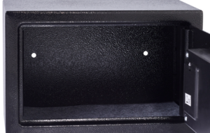 In de binnenkant van de kluis is de bodem elegant afgewerkt met vilt, wat een extra laag bescherming biedt voor de opgeborgen items. Bovendien zijn zowel de bodem als de achterwand van de kluis uitgerust met twee verankeringsgaten. Deze strategisch geplaatste gaten maken het mogelijk om de kluis stevig aan de vloer en/of de wand te bevestigen met het meegeleverde verankeringsmateriaal.