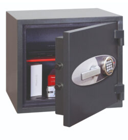 De SafetyFirst Core 25E is een compacte inbraak en brandwerende kluis voor thuis of klein zakelijk gebruik. Dit model is ideaal wanneer je waardevolle papieren, sieraden en kleine spullen veilig wilt opbergen zonder veel ruimte in te nemen.