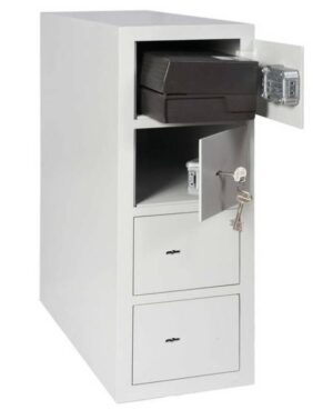 De afmetingen van de inwerpopening van de afstortlade zijn 170 x 10 mm (breedte x hoogte), waardoor het eenvoudig is om geld veilig te deponeren. Om diefstal via de lade te voorkomen, is er een anti-hengelmechanisme geïntegreerd in de kluis.
